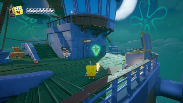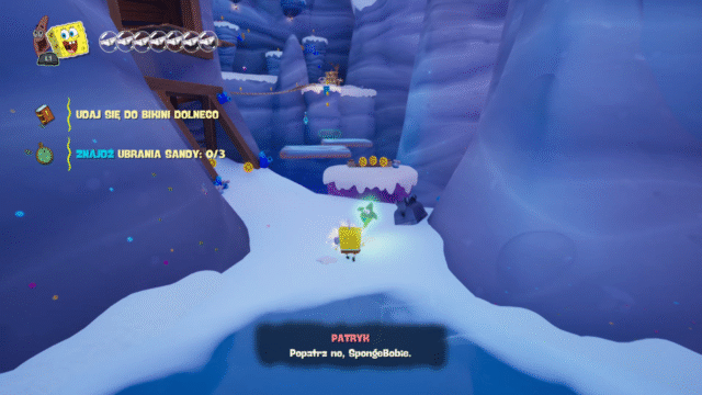 Musimy zebrać 10 złotych telewizorów rozsianych po całym Bikini Dolnym. Jeden telewizor znajduje się bezpośrednio przed wejściem do tajnej kaplicy. Zostawcie go sobie na sam koniec. Za ukończenie tego zadania otrzymamy skrzynkę.