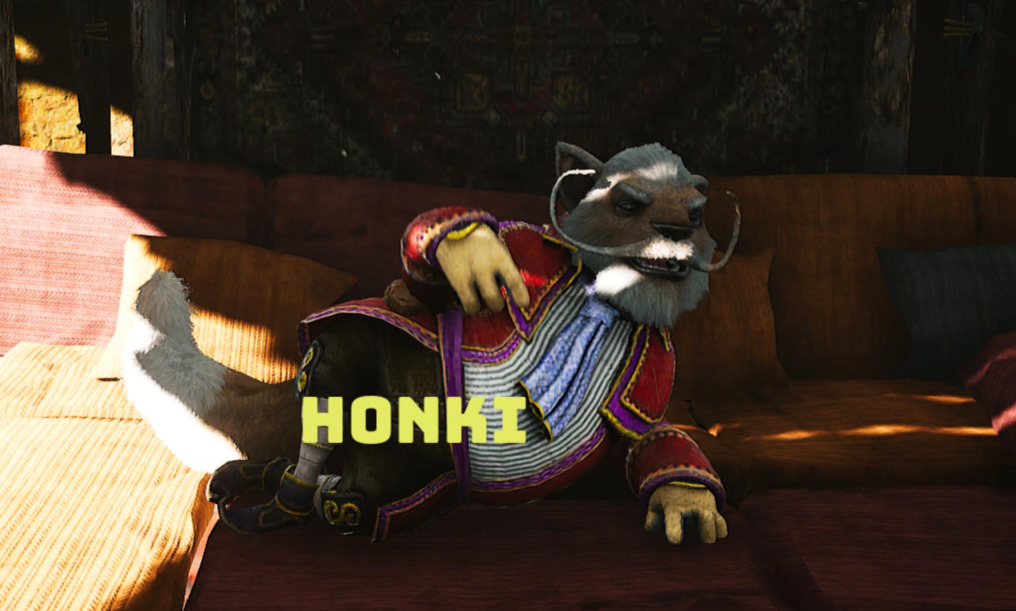 Honkiego znaleźć można zaraz na południowy-wschód od Drzewa życia pośrodku mapy (zdjęcie poniżej). Najpierw musimy wykonać dla niego 2 proste zadania poboczne polegające na przyniesieniu przedmiotów z określonych miejsc. Kiedy już to zrobimy, będziemy mogli zrobić u niego zakupy i zdobyć ten pucharek.