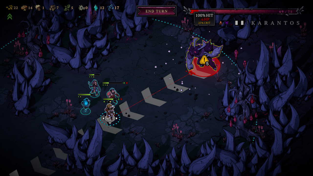 Czuć tu na pewno różnicę między postaciami i konieczność dostosowania ich do wydarzeń. Szkoda, że w parze z tym nie idzie ich wewnętrzny rozwój, który razi po oczach RNG. W trakcie przygody zdobywamy przedmioty, które dodajemy naszym wojakom, żeby mieli lepsze statystyki. Jeśli gra nie będzie łaskawa i Cię nie uraczy czymś fajnym, to po prostu leżysz. Zginiesz tu albo zaraz. Nie czuję, żeby dobór trudniejszej trasy – często kluczowy w końcowych fazach rogali – był tu opłacalny. Nie zyskujesz zbyt wiele idąc na mid-bossa, czy decydując się na pojedynki wynikające z wydarzeń. Nagroda wydawała się zawsze niewspółmierna do ryzyka. To też wypada zrewidować i poprawić.