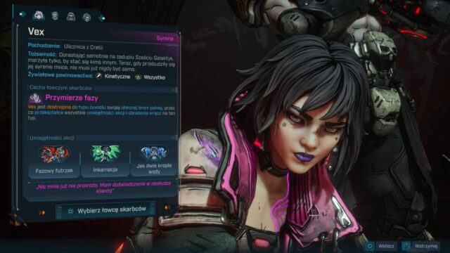 Wybór nie jest prosty, bo bohaterowie jak zawsze są bardzo zróżnicowani. Twórcy zadbali o to, aby maksymalnie zachęcić gracza do przechodzenia gry kilka razy (różnymi bohaterami). Otrzymujemy więc do wyboru: Rafę – ex-żołnierza z ogromem ofensywnych umiejętności, Amona – potężnego Wikinga z ciężkim pancerzem, Harlow – mistrzyni manipulacji grawitacją oraz Vex – nekromantkę korzystającą z energii fazowej. Długo wahałem się między Rafą oraz Vex i ostatecznie wybór padł na bohaterkę. Pod względem fabuły okazał się całkiem trafiony, bo w Borderlands 4 jesteśmy świadkami prawdziwych przerywników filmowych, gdzie nasz bohater (lub bohaterka) są widoczni na ekranie.