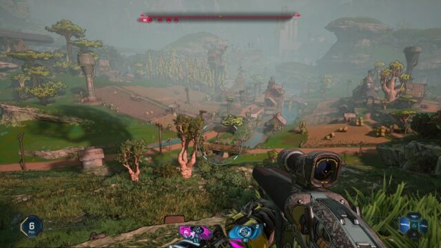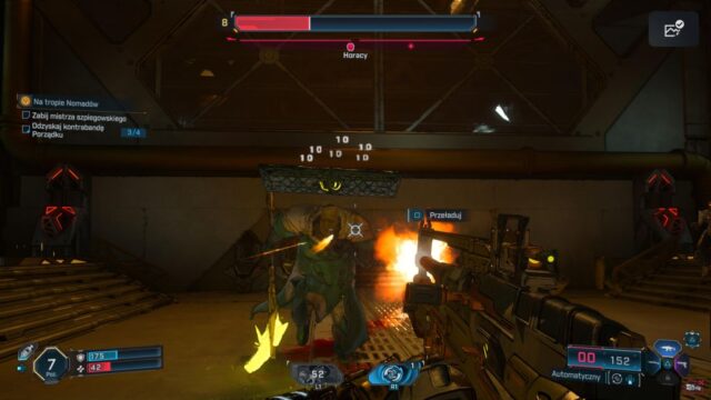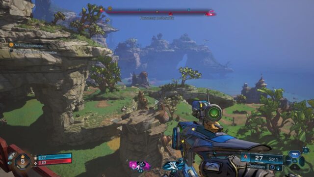 Po drodze okazuje się, że każdy biom ma swojego głównego złola, którego trzeba pokonać, a wybór w którym kierunku się udamy częściowo zostaje oddany graczowi. Uczciwie przyznaję – nie jestem mistrzem w FPS i niestety zdarzały się kilka razy sytuacje, w których gra zmuszała mnie do grindu, by móc przejść dalszy fragment głównego wątku. Grind polegał nie tyle na levelowaniu w górę, a bardziej na losowości związanej z wypadającym sprzętem. Czasem jedna, dobra, mocna fioletowa (a nawet niebieska!) broń potrafiła całkowicie odmienić przebieg kolejnych starć.