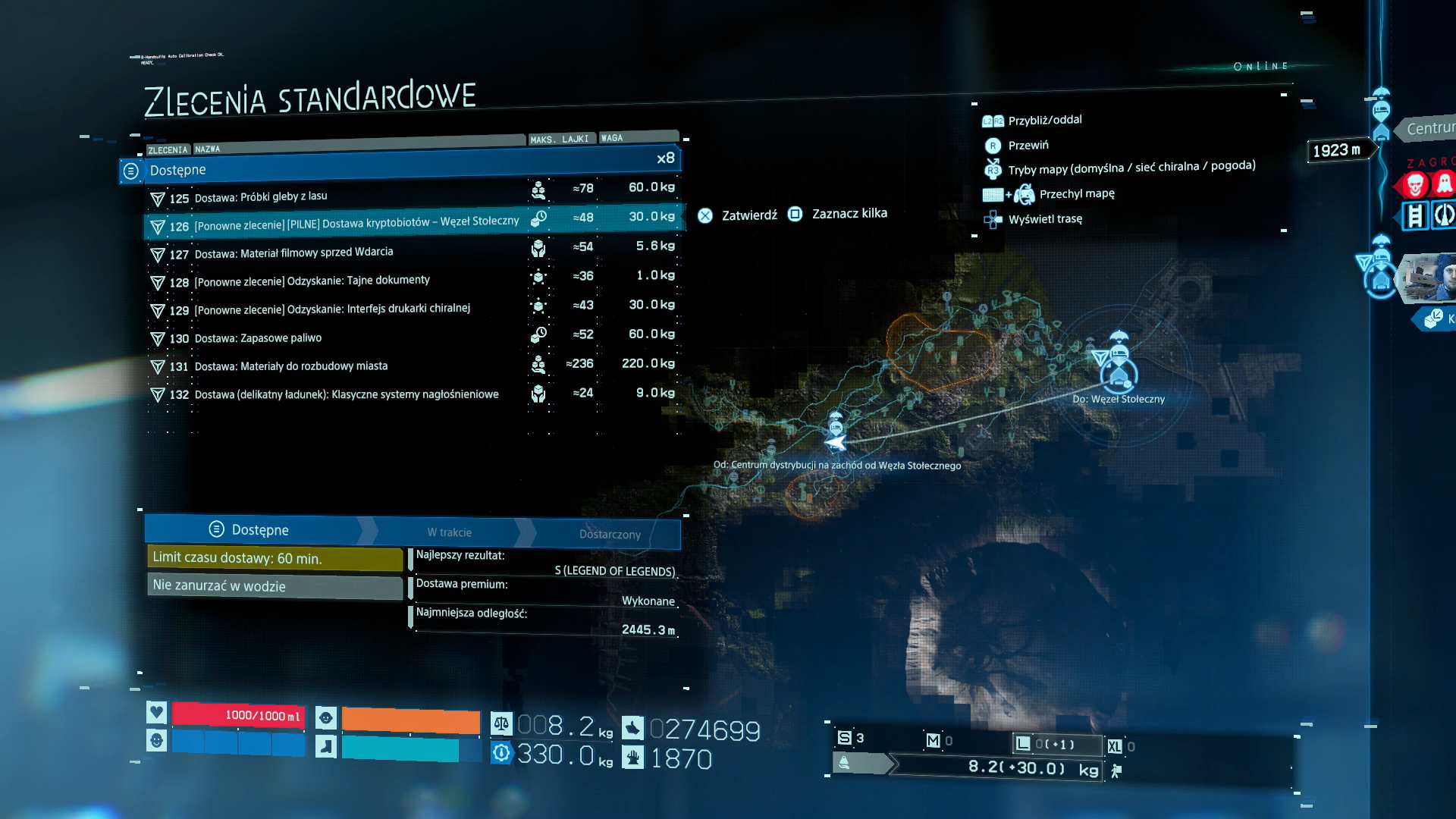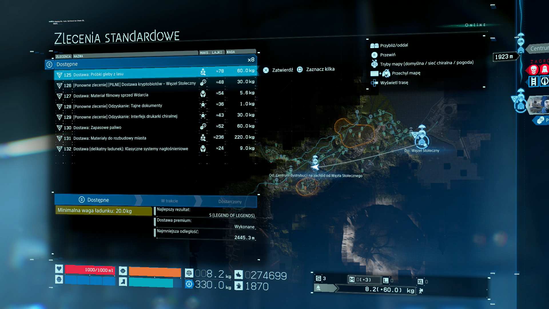 - 20 x zlecenie na usługę – będziemy musieli wgrać się w określone miejsce, znaleźć ładunek i dostarczyć go z powrotem do terminalu lub innego miejsca wskazanego podczas odprawy.
