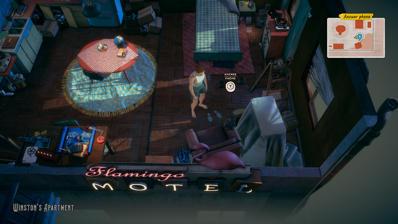 Każdy dzień Winstona zaczyna się w domu, gdzie kolejno podchodzimy do łaskawie odblokowanych przez grę punktów interaktywnych i wykonujemy pożądane czynności. Poranny rytuał zanim wyjedziemy na te dzikie ulice z ubiegłego wieku. Dojechawszy do firmy, zostanie nam przydzielone pierwsze zadanie, po czym każde kolejne przekazywane będzie zdalnie. Jedź tam – zabierz – zrób z tym coś – odwieź. Od znacznika do znacznika.