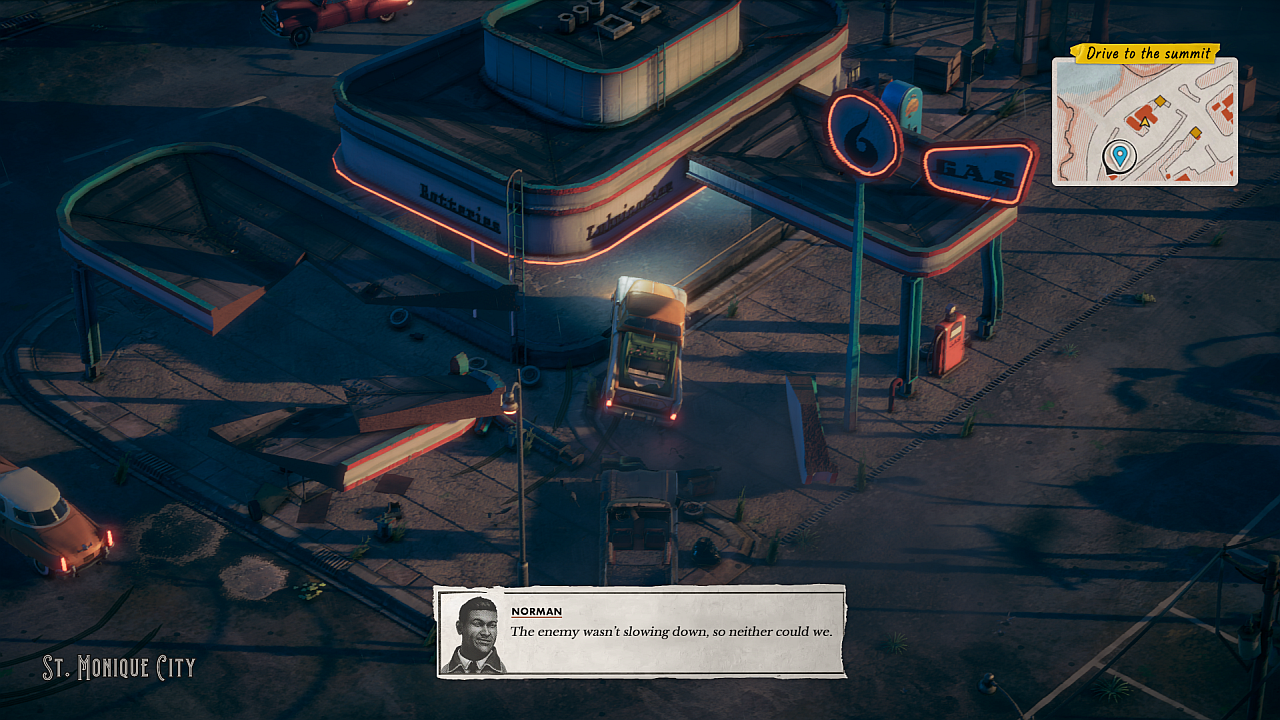 Deliver At All Costs od początku budziło miłe skojarzenia. Podobnie do niedawnego The Precinct oferowało beztroską jazdę z izometrycznej kamery, która przywoływała na myśl początki serii GTA. Nie kazała jednak uganiać się za przestępcami, a oferowała totalną demolkę. System zniszczeń otoczenia, który oczami wyobraźni rokował na coś interesującego/zabawnego. Przynajmniej tak było po pierwszych zwiastunach. W okolicach premiery Konami podzieliło się dostępem, po czym dosłownie za chwilę gra została oddana w ręce wszystkich, którzy przytulają tytuły rzucane w darmowym rozdawnictwie Epic Games Store. Na premierę – za darmo. Z jednej strony super, z drugiej potężny red flag, który podpowiada, że coś ewidentnie poszło nie tak…