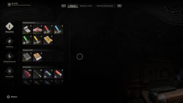 Mocno polecam od samego początku zbierać i przeszukiwać wszystkie dostępne miejsca na mapie jak: bezpieczne strefy (schematy, zasoby), podstacje (schematy, zasoby) wszelkiego rodzaju sklepy/magazyny (schematy, zasoby), w których przede wszystkim znajdziecie instrukcje do ulepszania waszego ekwipunku, co jest bardzo ważne, bo jest nam to potrzebne do pucharka „Rzemieślnik”. Sklepy/magazyny się regenerują z czasem, więc możecie je odwiedzać wielokrotnie podczas waszych wędrówek. Nie odkładajcie tego na później, jak jest coś po drodze to wejdźcie i przeszukajcie. Odkładając te czynności dołożycie sobie tylko niepotrzebnie czasu do zdobycia platynki.