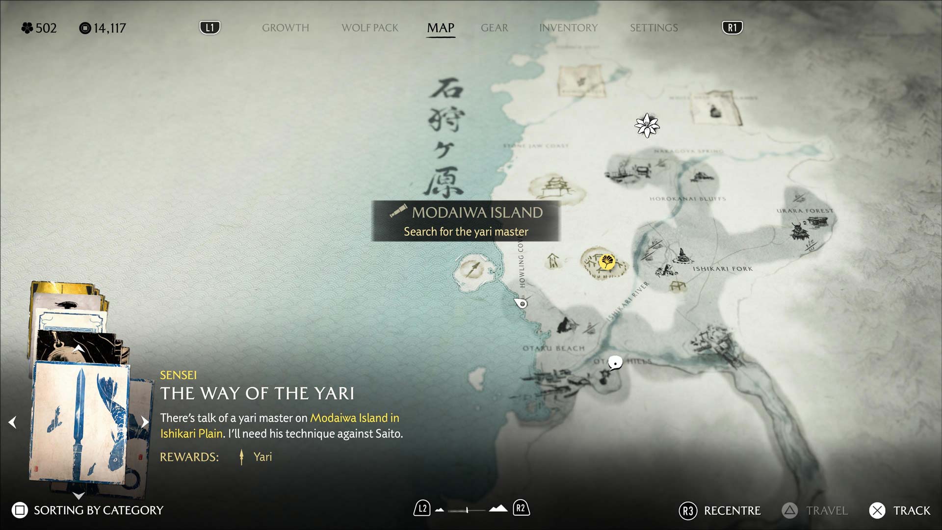 W regionie Ishikari Plain / Niziny Ishikari musicie odwiedzić mistrza broni, który znajduje się na Wyspie Modaiwa (zachodnia część mapy). Po jego pierwszym odwiedzeniu, nauczycie się władania włócznią Yari. W kolejnej części zadania, odwiedzicie dojo mistrza Takahashiego, po czym otrzymacie kartę z zadaniem The path of the Yari / Ścieżka Yari. Będziecie musieli rozwinąć drzewko umiejętności związane z włócznią poprzez odwiedzanie Ołtarzy oraz uwolnić uczniów więzionych w Składzie Drewna Horokanai. Postępujcie wg kolejnych etapów, aż zrobicie wszystkie i będziecie mogli wrócić do dojo. Po powrocie będziecie musieli obronić dojo przed atakiem najeźdźców, po czym otrzymacie trofeum.