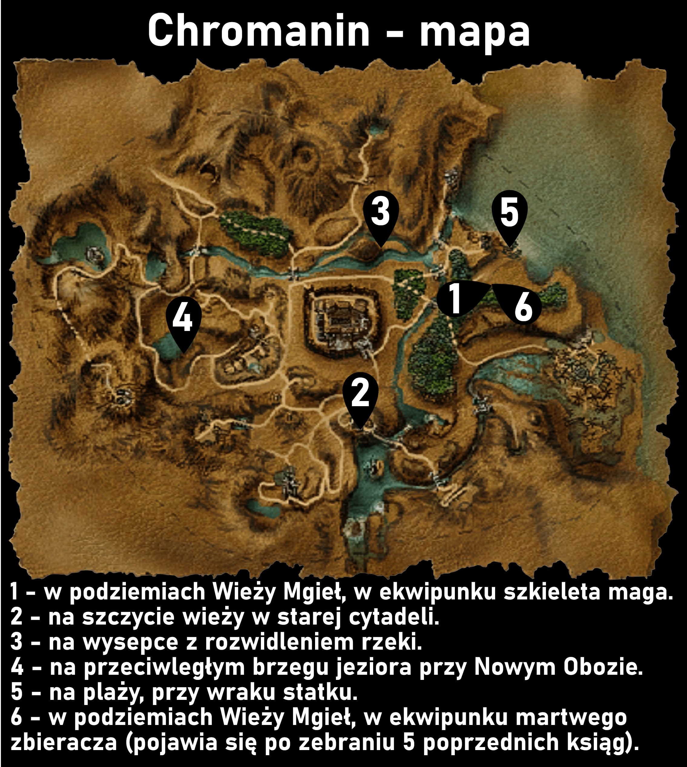 - 2 księga znajduje się na terenach orków na samym szczycie wieży w starej cytadeli (zaznaczony punkt na mapie).