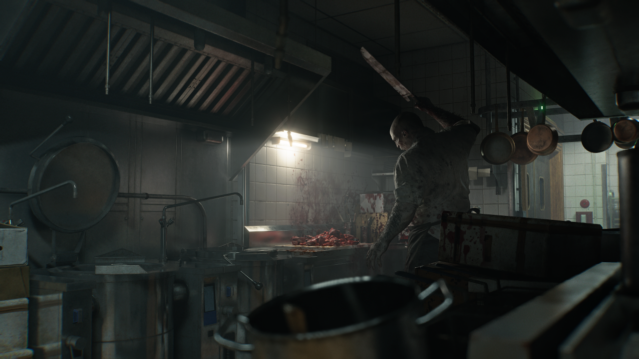 Jest też jedna rzecz, która mi się nie podoba. Crafting. Oczywiście on jest w serii obecny od dłuższego czasu, ale tu jego forma jest zbyt czasochłonna. Do wytworzenia rzeczy potrzebujemy krwi zakażonych. W trakcie rozgrywki zdobywamy “zbierak”, który strzykawką wysysa płyn z wiadra lub z pokonanego wroga. Trwa to zwyczajnie za długo. Jest motywem dość mozolnym i chyba z premedytacją stworzonym, żeby czuć presję nadchodzącego zagrożenia. W tym fragmencie jednak takiej presji nie czułem, więc na razie muszę to uznać za zbędne urozmaicenie. Wyglądało to momentami, jak podnoszenie przedmiotów w Fatal Frame/Project Zero, gdzie zaraz potencjalnie wyskoczy duch i musisz mieć się na baczności, żeby operację przerwać. Kamera się zwęża, zmienia pozycję i niejako blokuje nam pole widzenia. Tyle że to najczęściej będziemy wykonywać, gdy pomieszczenie będzie już puste, więc… meh? Może w dalszej fazie gry faktycznie się to zmieni (łatwo sobie wyobrazić walkę z bossem, gdzie byłaby konieczność stworzenia amunicji w jej trakcie, co faktycznie miałoby sens), ale na razie jestem na nie.