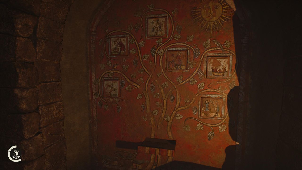 - Artefakt persesa – znajdziemy w kanałach w jednej z ślepych odnóg. Będziemy musieli zniszczyć murowaną ścianę i pokonać wrogów za nią. Natkniemy się tam na zagadkę z obrazami dotyczącymi produkcji wina, które musimy ułożyć w odpowiedniej kolejności. Kolejność pokazana jest na drugim z poniższych screenów.