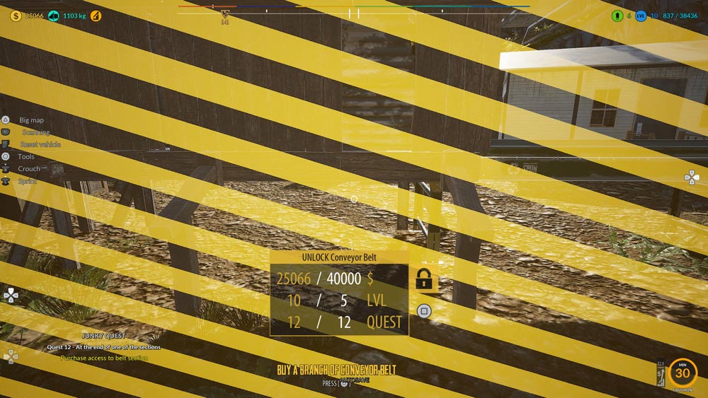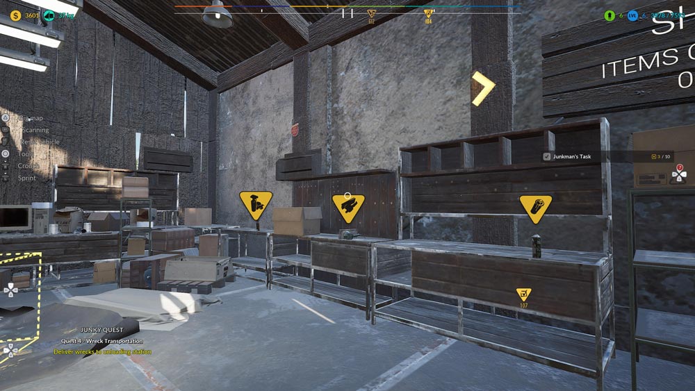 Conveyor Belt / Taśmę będziecie mogli zakupić w trakcie Questa 12 oraz wbiciu przynajmniej 5 poziomu doświadczenia. Potrzebne też będzie 40,000$. Po spełnieniu tych wymogów, udajcie się do miejsca zaznaczonego na mapie oraz zakupcie taśmę. Służy ona do przenoszenia przedmiotów pod klatkę na Giełdzie Złomu. Dzięki niej nie musicie tam specjalnie jechać i upychać wszystkiego w ekwipunku oraz samochodach, wystarczy wrzucić przedmiot, poczekać od dojedzie do końca i pojawi się na Giełdzie Złomu.