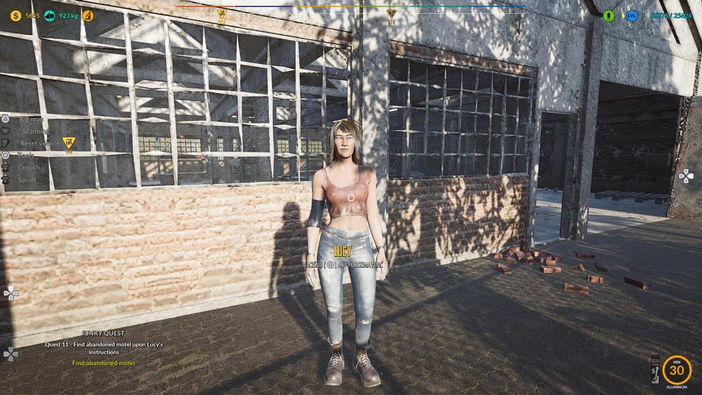 Lucy znajdziecie w trakcie jednego z zadań lub możecie odwiedzić ją wcześniej i trofeum też wpadnie. Stoi ona w miejscu Paczkarka do karoserii (numer 2 na mapie), nieco na lewo od naszego garażu (stojąc frontem do niego). Obejdźcie go od strony małego crushera do samochodów i powinniście na nią trafić.