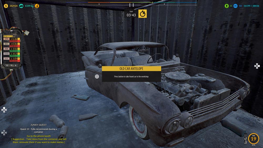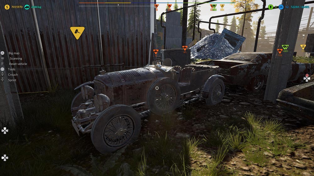 Róbcie misje główne, które nauczą Was wszystkich mechanik oraz dadzą dostęp do wszystkich maszyn. Przy okazji wbijecie wszystkie pucharki związane z poznaniem odpowiednich osób. Najpierw skupcie się jednak na uruchomieniu jak największej liczby sektorów na złomowisku, które kupujecie na samym początku gry. Wszystkie potrzebne narzędzia już macie ze sobą, możecie je jedynie ulepszać, aby szybciej ogarniać sektory, ale nie jest to wymagane. Do uruchomienia każdego sektora będziecie potrzebować trochę kasy, aby stworzyć stanowisko dla pracownika oraz zakupić zasoby. Na samym początku gry, dobrym sposobem na szybką kasę jest robienie zadań od ludzi. Jedne z lepszych znajdziecie w Opuszczonej Fabryce, gdzie za jedno zadanie możecie zarobić około 8000$. Inne sposoby na zarobek opisałem w trofeum