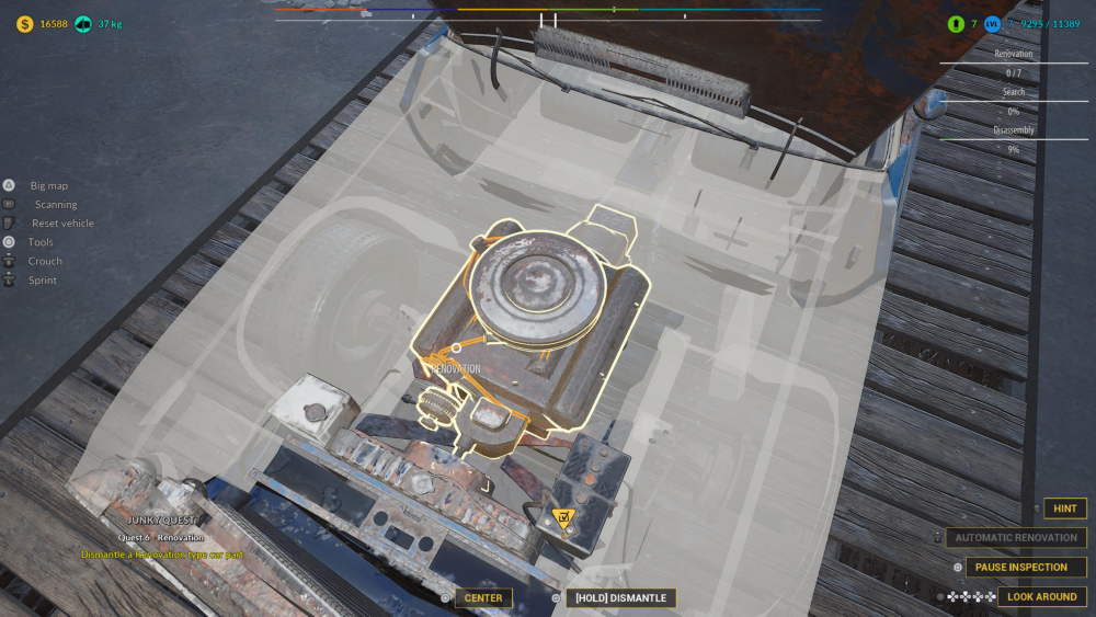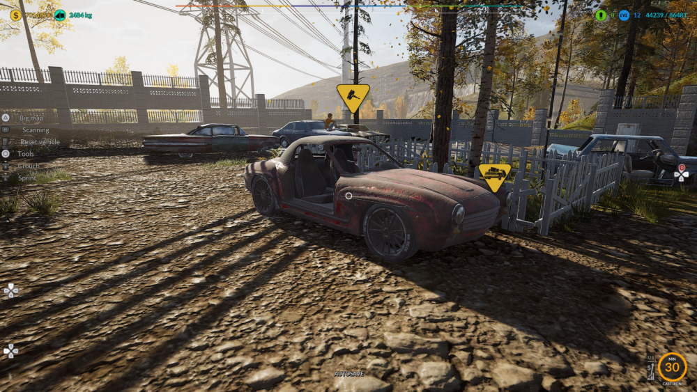 Kolejnym elementem są kontenery. Pamiętacie dość popularny serial, gdzie grupka ludzi kupowała je w ciemno? Tutaj mamy to samo. Wystarczy podejść pod drzwi, zapłacić odpowiednią sumę i liczyć na to, że było warto. Póki co gra zawsze daje jakiś profit, więc stracić na tym nie stracimy. Znalezione przedmioty możemy sprzedać u sympatycznej staruszki w lombardzie lub oddać je na materiały. Czasami trafi się nam wrak pojazdu, który można odrestaurować, aby sprzedać go z dużym zyskiem. Ba, mamy nawet własny hangar z klasykami imitującymi chociażby Mercedesa 300SL. Sama mini-gra z przygotowaniem pojazdu potrafi zająć nawet i pół godzinki, gdzie musimy najpierw wszystko ładnie rozebrać, kabel po kablu i śrubka po śrubce, aby móc założyć nowe części. W międzyczasie trzeba będzie wyczyścić i pomalować elementy karoserii, jak drzwi, maskę, a nawet silnik. Odnawiać można nie tylko samochody, ale również meble czy masę innych przedmiotów, aby później móc je sprzedać. Jak widać, w grze jest sporo do roboty. Początkowo wręcz przytłacza ilością aktywności, ale wystarczy robić główne zadania, aby wszystko stało się jasne. Pod koniec gry będziemy mieć już wszystko w małym palcu, do tego stopnia że sami będziecie sobie układać plan dnia, od czego chcecie zacząć, a na czym skończyć, itd.