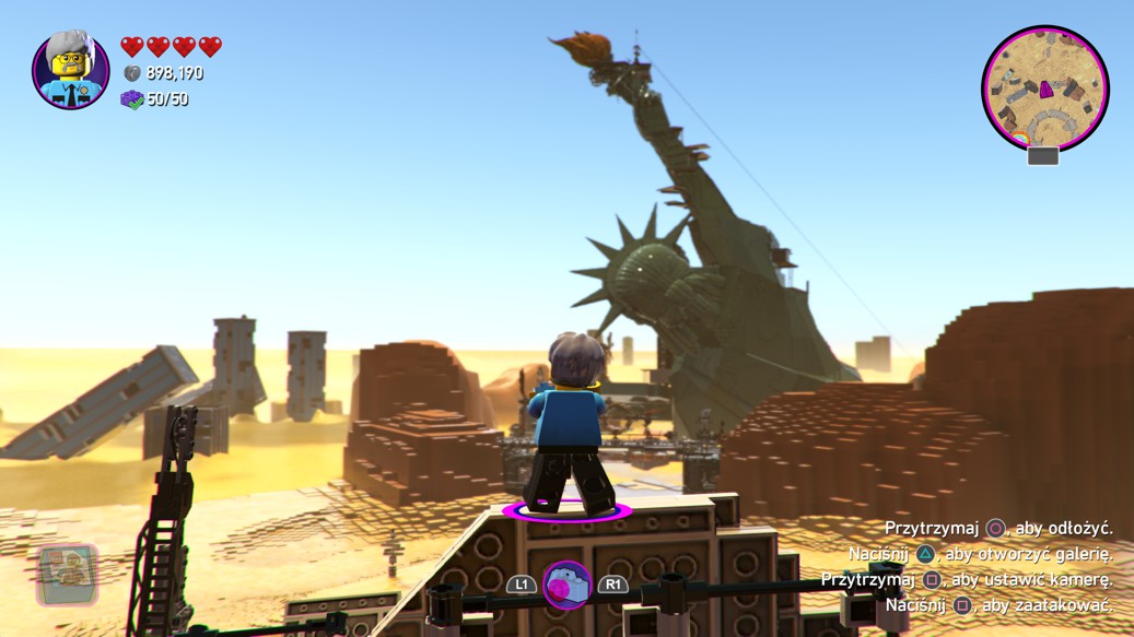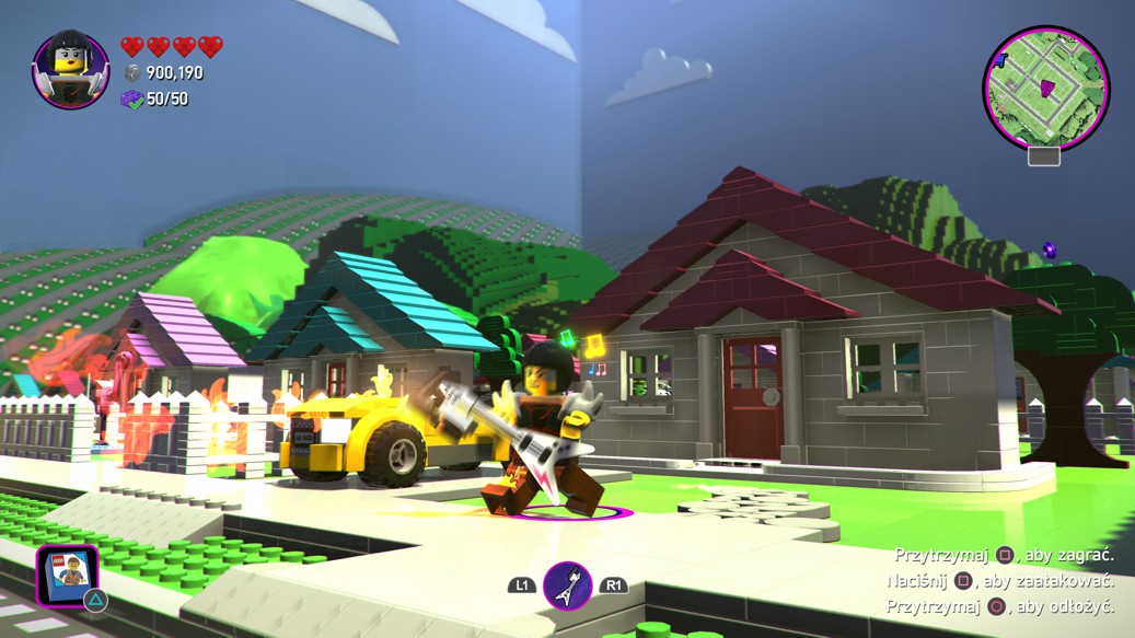 Gra jest też w pełni zlokalizowana. Kluczowe misje w grze mają pełen polski dubbing, który wykonany jest przez tych samych aktorów, których mogliśmy poznać w filmowej wersji Lego Przygody. W dodatku wszystkie samouczki mają również pełen głosowy podkład, więc gra może być w pełni obsługiwana nawet przez najmłodszych graczy. I tu pojawia się klucz całej gry. LEGO Przygoda 2 Gra Video jest raczej skierowana do najmłodszego odbiorcy. Nic w grze nie będzie stanowić dla gracza większego wyzwania. Nawet pojazdy, których jest multum są wyjątkowo wolne i nieraz szybciej jest dotrzeć do celu biegnąć niż używać samochodu.