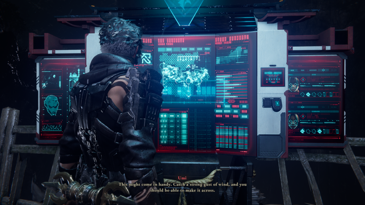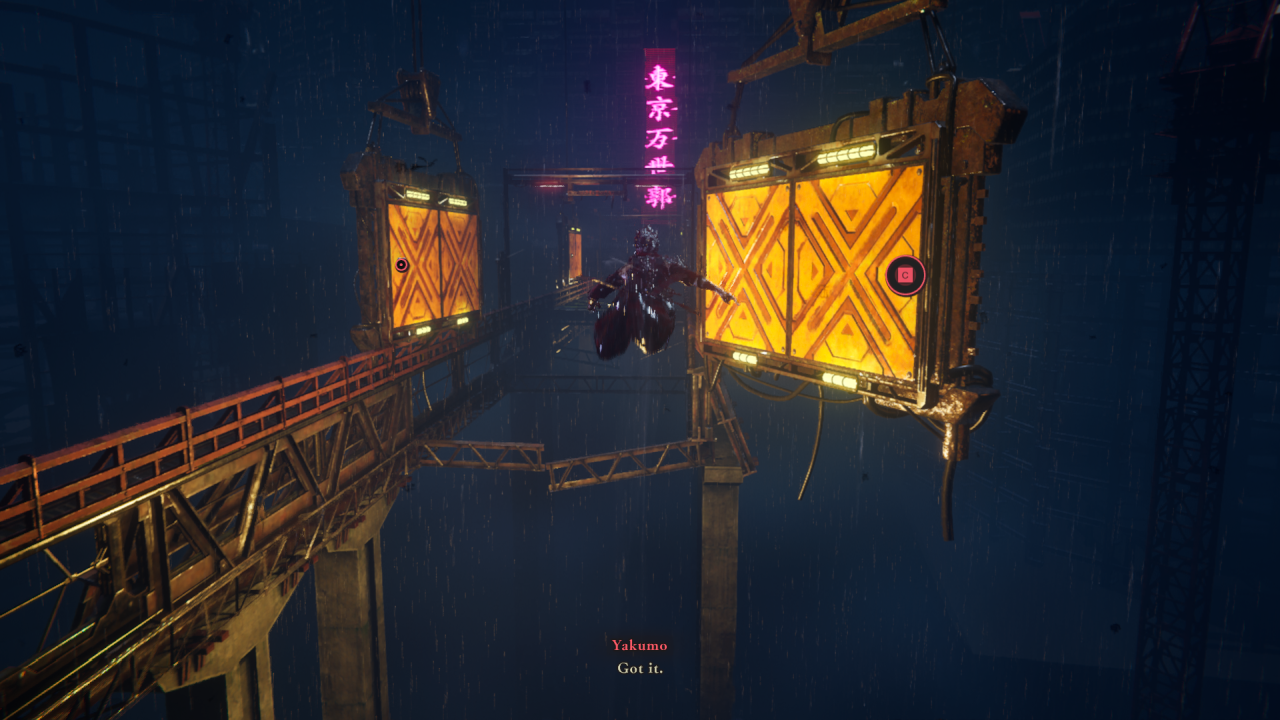 Niestety znacznie trudniej mi się pogodzić z segmentami podróżnymi. Ninja Gaiden 4 bardzo lubi mieszać sekwencje walki z jakimiś elementami quasi platformowymi. Co kilka rozdziałów dostajemy jakąś nową umiejętność dla Yakumo, która ma… nadać nowy efekt dla przycisku RB? Z początku to efekciarstwo zepchnie nas na poręcze/tory, po których będziemy się przemieszczać z super-ninja-prędkością. Okazjonalnie trzeba będzie coś przeskoczyć, wślizgiem zmieścić się pod przeszkodą lub zmienić tor w ucieczce przed czołówką z pociągiem – mniejsza tym, co on tam robi w opuszczonym mieście. Z perspektywy gracza to po prostu wciskanie RB. Z czasem bardzo podobną formą będzie surfing, a w międzyczasie dostaniemy szybowanie w powietrzu i linkę z hakiem. Na papierze brzmi spoko, ale w Ninja Gaiden 4, taka sekwencja wygląda następująco – RB, żeby złapać się (koniecznio oznaczonego na żółto) miejsca na linkę, RB, żeby pojechać po barierce, RB, żeby wpaść w ten prąd powietrzny i… w zasadzie nic, bo on nas sam prowadzi i nawet nie chce mu się wymyślać przeszkód. Fajne. Jakbym miał 5 lat, to bym się zachwycał… Tych elementów jest tu stanowczo za dużo i ja to nazywam bardzo tanim efekciarstwem. Taki blockbuster, który się wycofał z kin przed wakacjami i wydano go na DVD. Niewiele mi to dało, choć przyznam, że muzyka czasami miło wchodzi w ucho. Przy odpowiednim mango entuzjazmie można potupać nogą przy walce z pierwszym bossem.