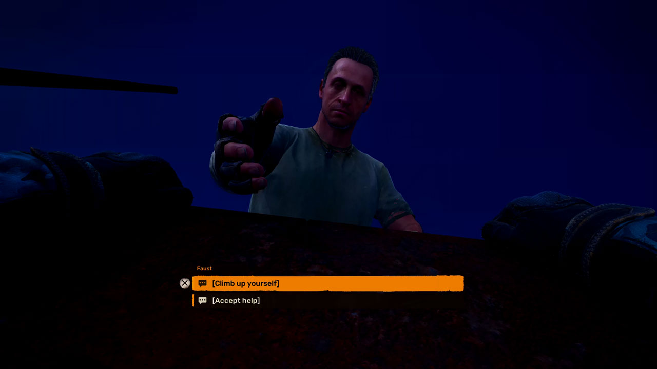 W przypadku tego trofeum, musicie wybrać opcję [Przyjmij pomoc] / [Accept Help], po czym Faust was upuści, spadniecie i umrzecie, więc gra automatycznie cofnie was do momentu sprzed wyboru.