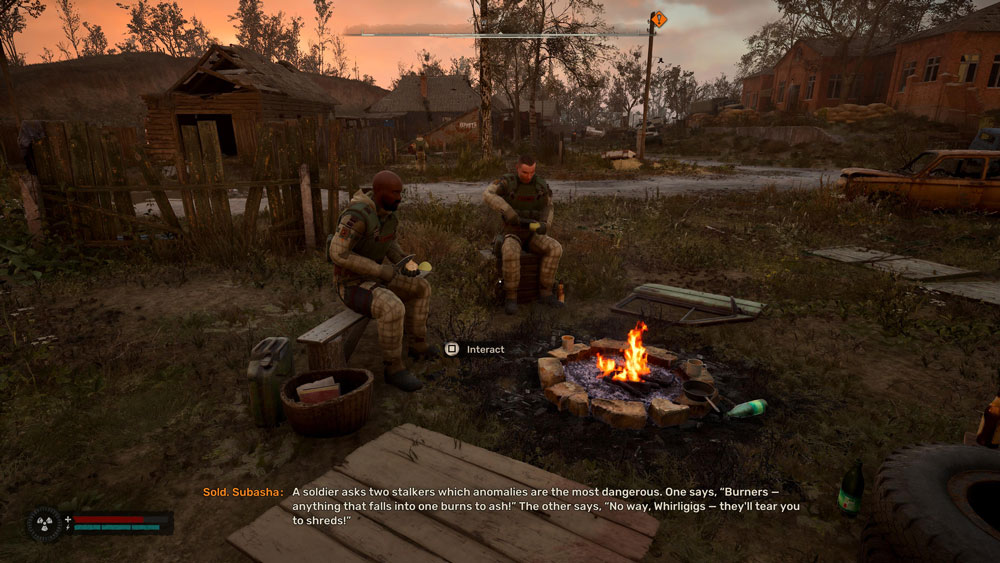 Dołącz do stalkerów, żeby poplotkować przy ognisku. / Join Stalkers for some campfire gossip.