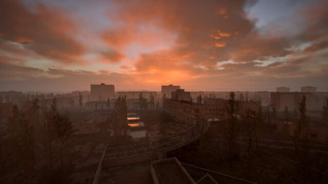 Mapa jest bardzo duża, a co ważniejsze, nie ma na niej żadnych ekranów ładowania! Przejścia między strefami, wejścia do budynków czy podziemi dzieją się cały czas w tej samej instancji (Halo, Bethesda? Uczymy się!). Do tego jest to chyba obecnie najpiękniejsza gra w otwartym świecie w jaką przyszło mi grać. Unreal Engine 5 wyciska z siebie wszystkie soki, co widać w każdej klatce! Wszelkie lasy, pola, chaty, budynki, pojazdy, a nawet bronie wyglądają niemal fotorealistycznie. Nie przepadam za tym słowem, ale tutaj po prostu trzeba go użyć. Opad kopary, szczególnie przy pięknych zachodach słońca, jest niemal gwarantowany. Zaś, gdy zapada zmrok i zacznie padać, a my przebijamy się gdzieś przez środek lasu z pełnym plecakiem, a w oddali słyszymy jakieś wycie i strzały to aż krew w żyłach zaczyna szybciej płynąć! Po całej mapie przemieszczamy się na nogach, a jedyna opcja szybszego podróżowania to znani z poprzednich części Przewodnicy, którzy za odpowiednią opłatą „przerzucą” nas do innego głównego ośrodka. Wszystko śmiga w trybie płynności 60 klatek. chociaż pojawiają się chrupnięcia, szczególnie w Prypeci. Podczas zwiedzania wnętrz porzuconych domów, mieszkań, sklepów czy fabryk można totalnie odpłynąć. To, że czas się tam zatrzymał to nic odkrywczego, ale widząc te wszystkie przedmioty, które starsi gracze sami doskonale powinni pamiętać z naszych realiów dodają jeszcze większego uroku. Na widok wagi sklepowej czy meblościanki w jednym z mieszkań od razu przypominają mi się czasy dzieciństwa.