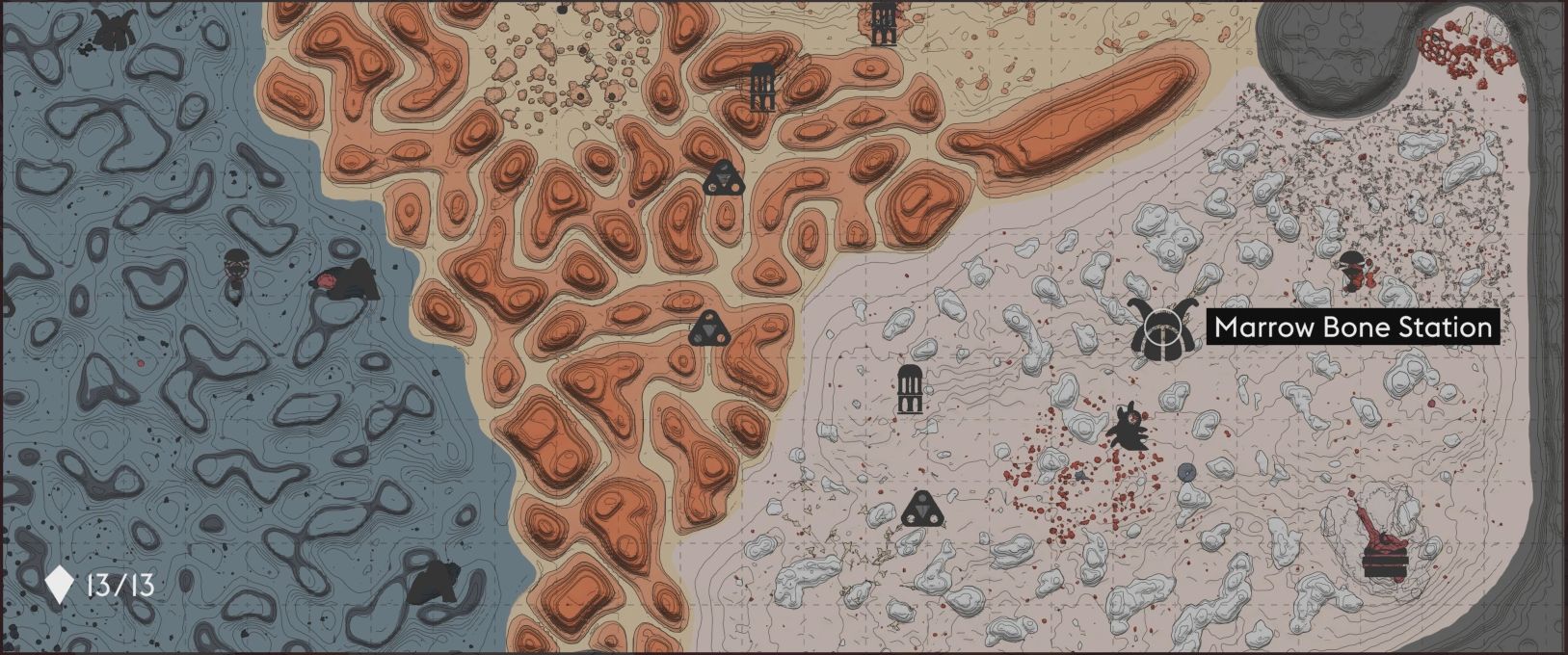 - Trzecie zadanie otrzymamy od Offu w Marrow Bone Station i udajemy się na pólnoc od kartograferaw róg The Wash (prawy dolny róg na mapie). Przedzierając się przez las martwych drzew znajdujemy siedlisko żuków.
