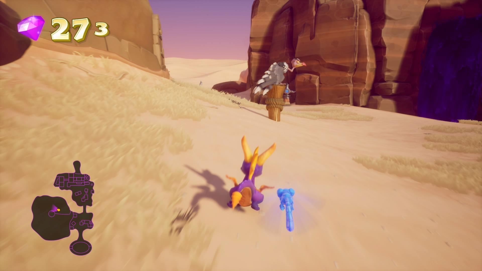 Polski opis znów jest niedokładny, chodzi o etap Miasto na Klifie / Cliff Town. Po część sępów należy przelecieć ze szczytu budynku na końcu etapu w przeciwną stronę po prawej, na klif. Ostatni sęp znajduje się w samym rogu tego etapu, gdzie nie ma już żadnego gemu, nie przegap go! Pamiętaj, aby spalić je, a nie szarżować.
