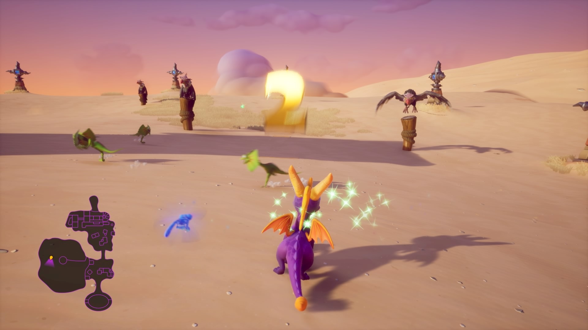 Aby odnawiać energię, możesz zdmuchiwać różne małe zwierzątka, które zamienią się w motylka którym pożywia się Sparx – owce, kurczaki, nietoperze. Gdy Sparx zniknie, każdy następny wypadek przy pracy oznacza naszą śmierć.