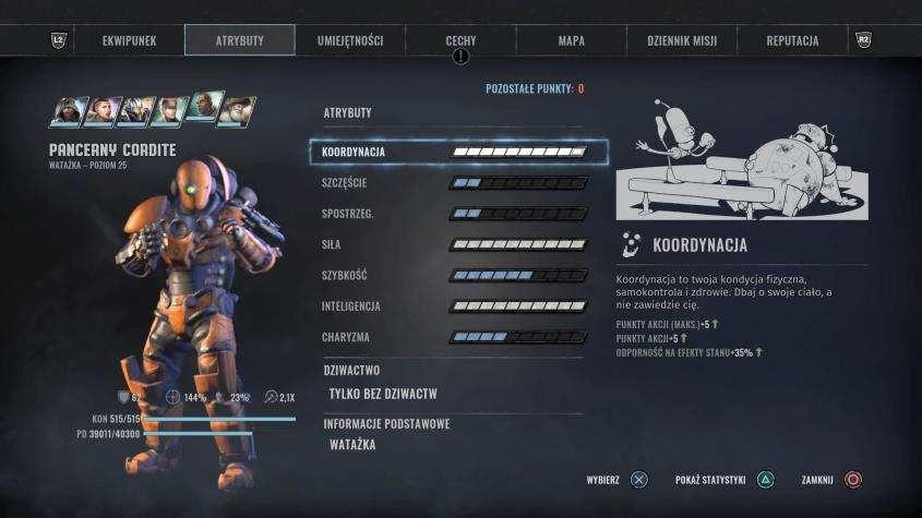 Taktyka walki. Zawsze staramy się inicjować walkę, by mieć przewagę i zabić jak najwięcej wrogów, zanim oni nam coś zrobią . Postać z shotgunem eliminuje przeciwników stojących w grupach, dobrze jak ma naładowany specjalny atak, snajper zajmuję się najtrudniejszym przeciwnikiem, obniżając jego pancerz/naznacza cel, mechanik rozstawia działka/wabiki by na nich skupił się wróg na początku walki, mięśniak z miotaczem płomieni obniża celność wrogów i podpala ich jak najwięcej, Cordite/Kwon/Luci/Żul debufują wrogów lub wykańczają niedobitki.