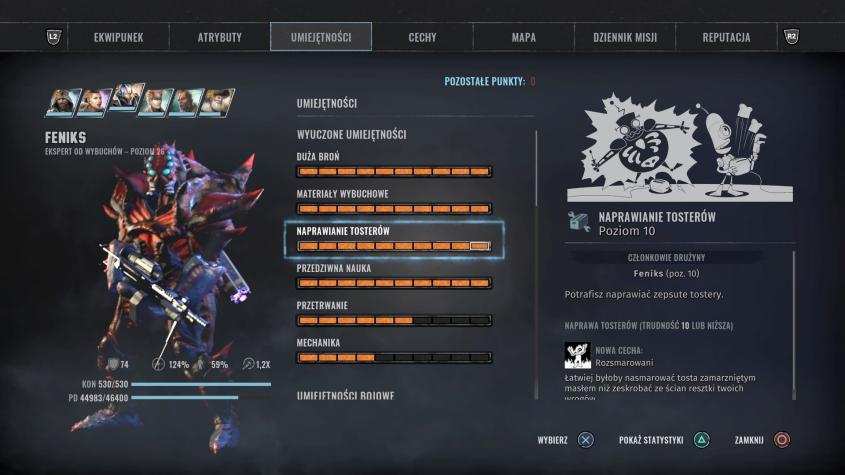 Tosterowa ekspertyza, bonus do obrażeń od ognia, - Pierwsza pomoc – dobry medyk na polu walki jest niezbędny na poziomie trudności „Straszny cham” wymagany dla