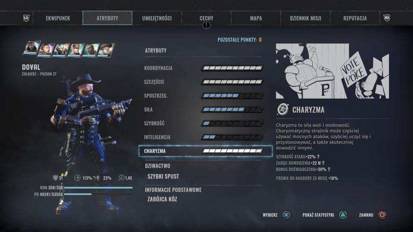 Maneżeria – Majora Kocurka, mechanika, otwieranie zamków pomoże nam przejść prolog w łatwiejszy sposób. Po dotarciu do Kolorado w rozmowie z Patriarchą wysyłamy do więzienia złapanego Dorseya (wymagane dowodzenie na 2 lvl-u), by nie pominąć książki z
