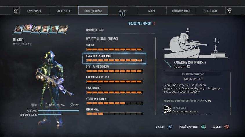 Dobrze jest wyspecjalizować każdego członka drużyny w inny rodzaj broni, amunicja jest trudno dostępna na początku gry, fundusze również szybko się kończą. O taktykach, tworzeniu postaci, drużyny itd. etc. można napisać osobny poradnik, więc jak ktoś ma lepsze pomysły lub uwagi wrzucajcie Wasze opinie w komentarzach. Poniżej screeny jak ja zbudowałem drużynę, jest to przed spotkaniem z Liberty więc „prawie” koniec gry.